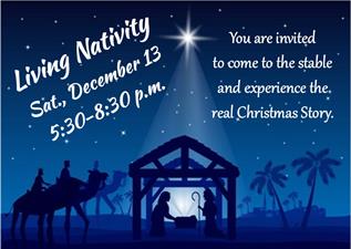 Mason First United Methodist Church Mason First United Methodist Church invites you to join us at our Living Nativity on Saturday, December 13 from 5:30- 8:30 p.m. Enjoy the Christmas Story from a hayride or from the comfort of your car as you drive through our parking lot, where 300 luminaries will mark the way as you journey to the stable in Bethlehem. You’ll experience 8 scenes from the Christmas Story featuring live actors and animals, including camels! Enter the parking lot from Rogers St., or hop on a hayride on Barnes St. We are located at 201 E. Ash St. in Mason. Admission is free!
